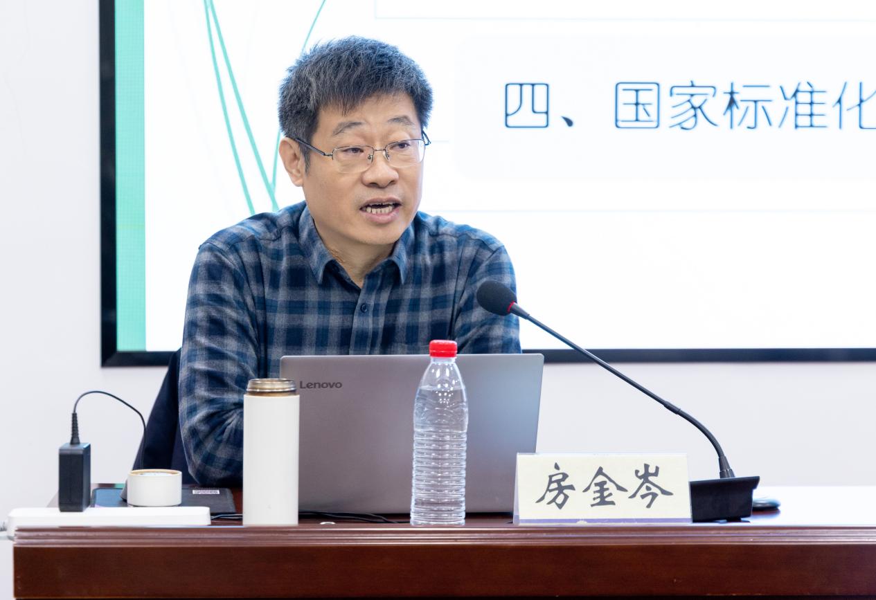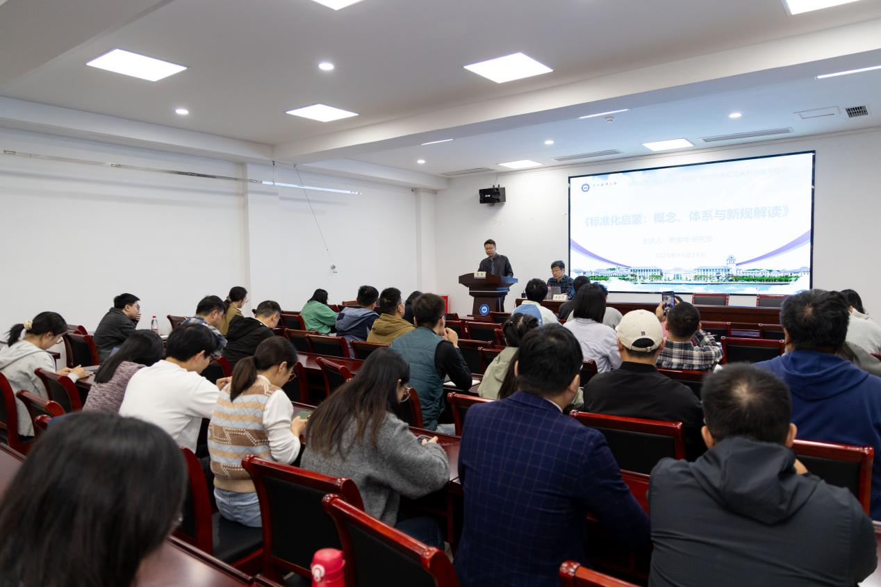 房金岑研究员从“标准化”这一基础概念出发,系统阐释了“标准化”活动与“标准”文件之间的区别与联系,逐步讲解了标准化、标准化文件、标准、标准体系及综合标准化等基本概念的内涵,帮助在场师生建立起对标准化工作的初步理论框架。他还结合新修订的《标准化法》与《国家标准化发展纲要》等政策文件,深入解读了当前国家标准化管理的新趋势与新要求,详细介绍了国家标准、行业标准、地方标准及团体标准在制修订程序、立项管理、宣贯实施以及专利融入标准等方面的最新制度安排,为我校科研人员参与标准研制工作提供了实践指引。